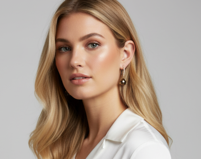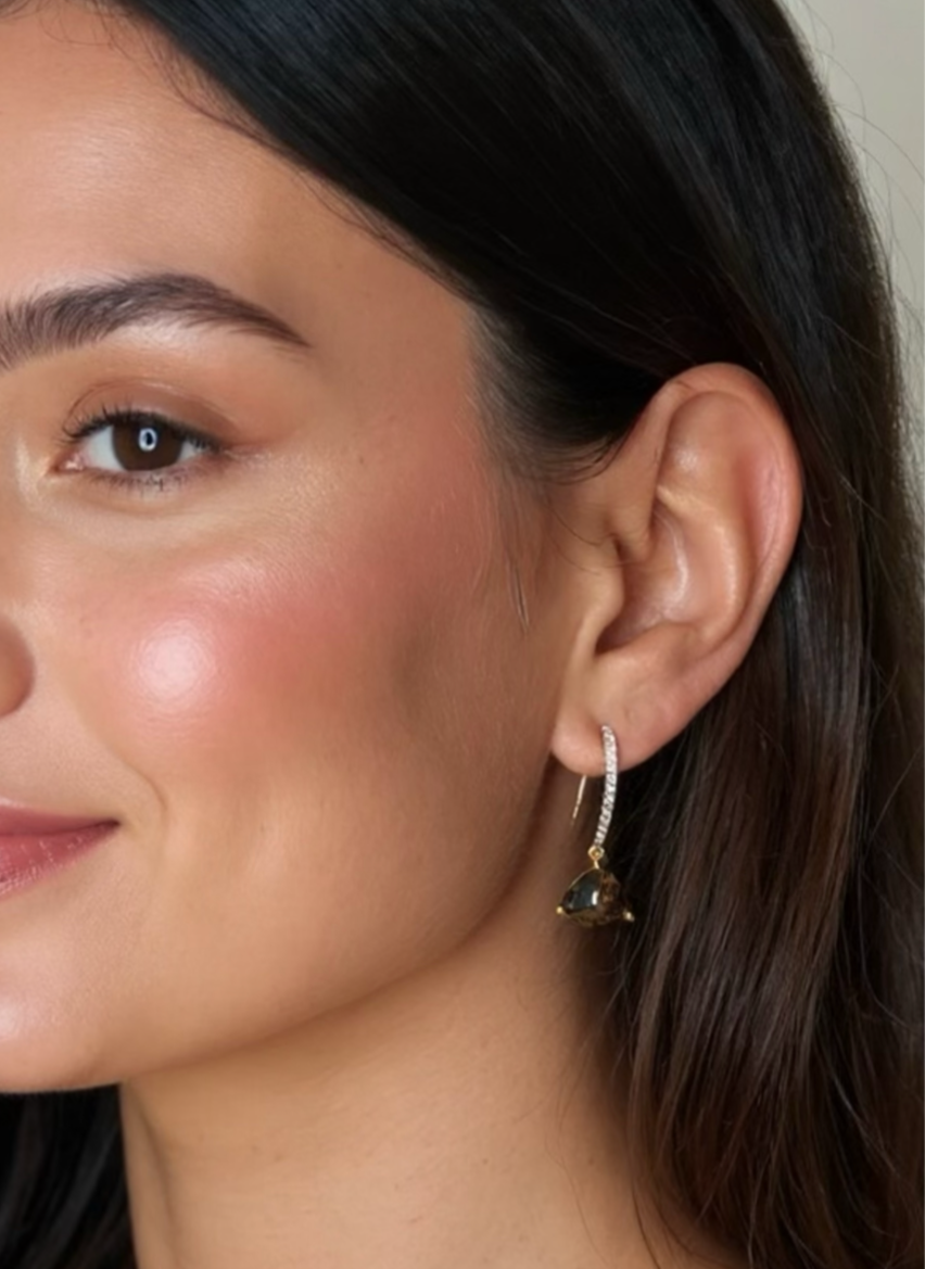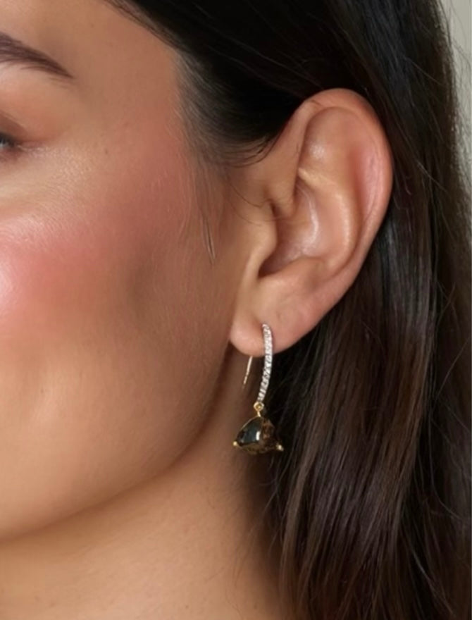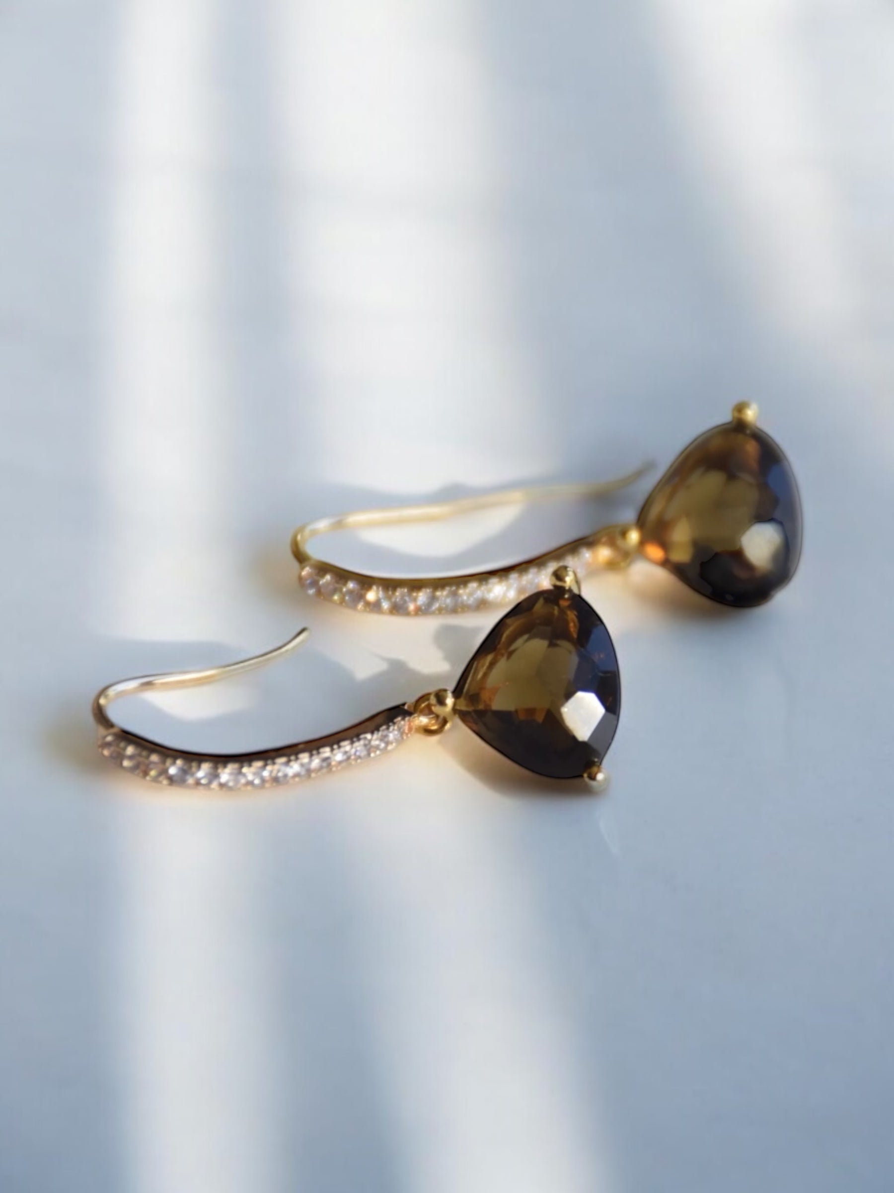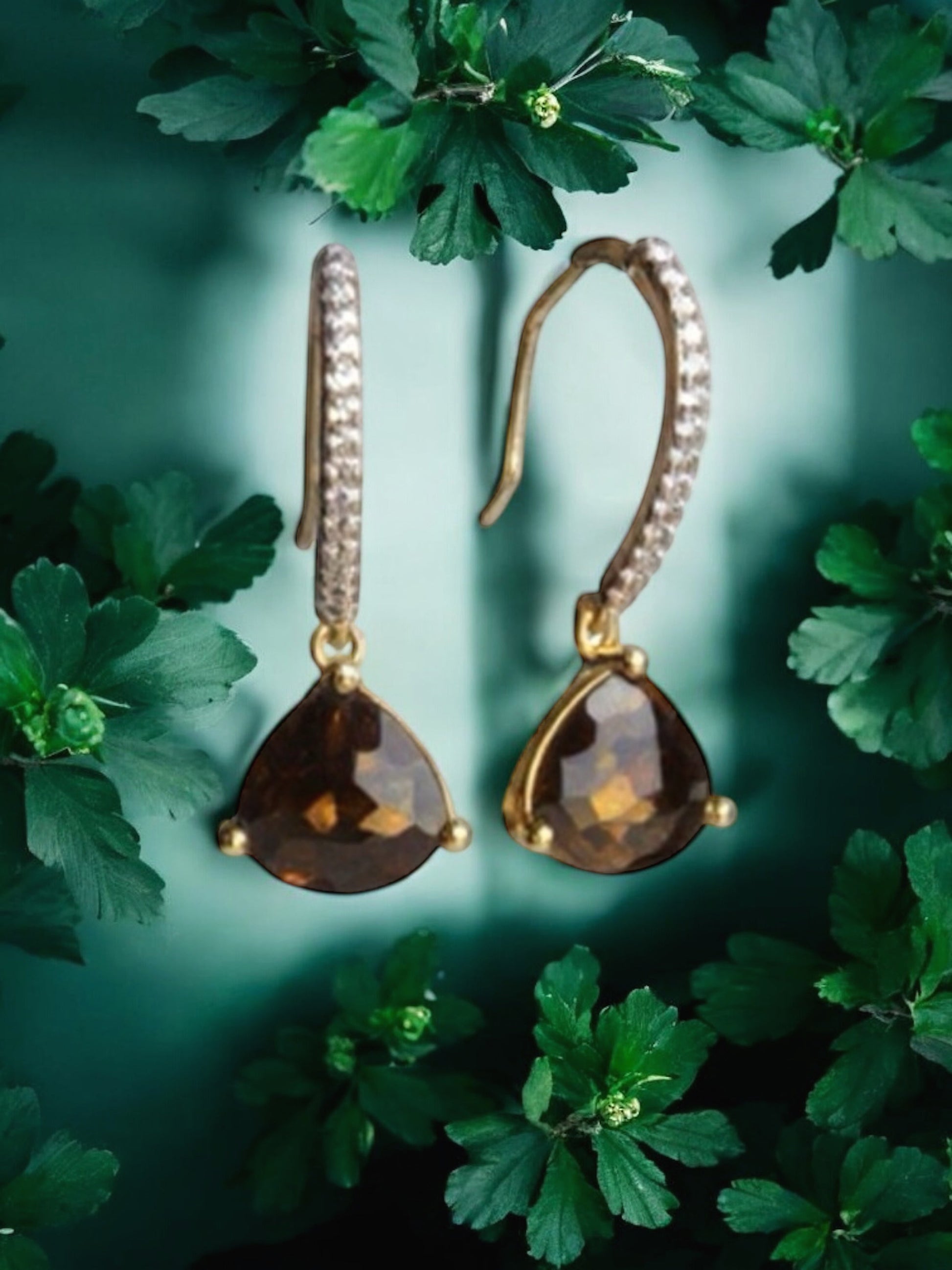 Material: Gold-plated earrings with cubic zirconias with mocha brown pendants.