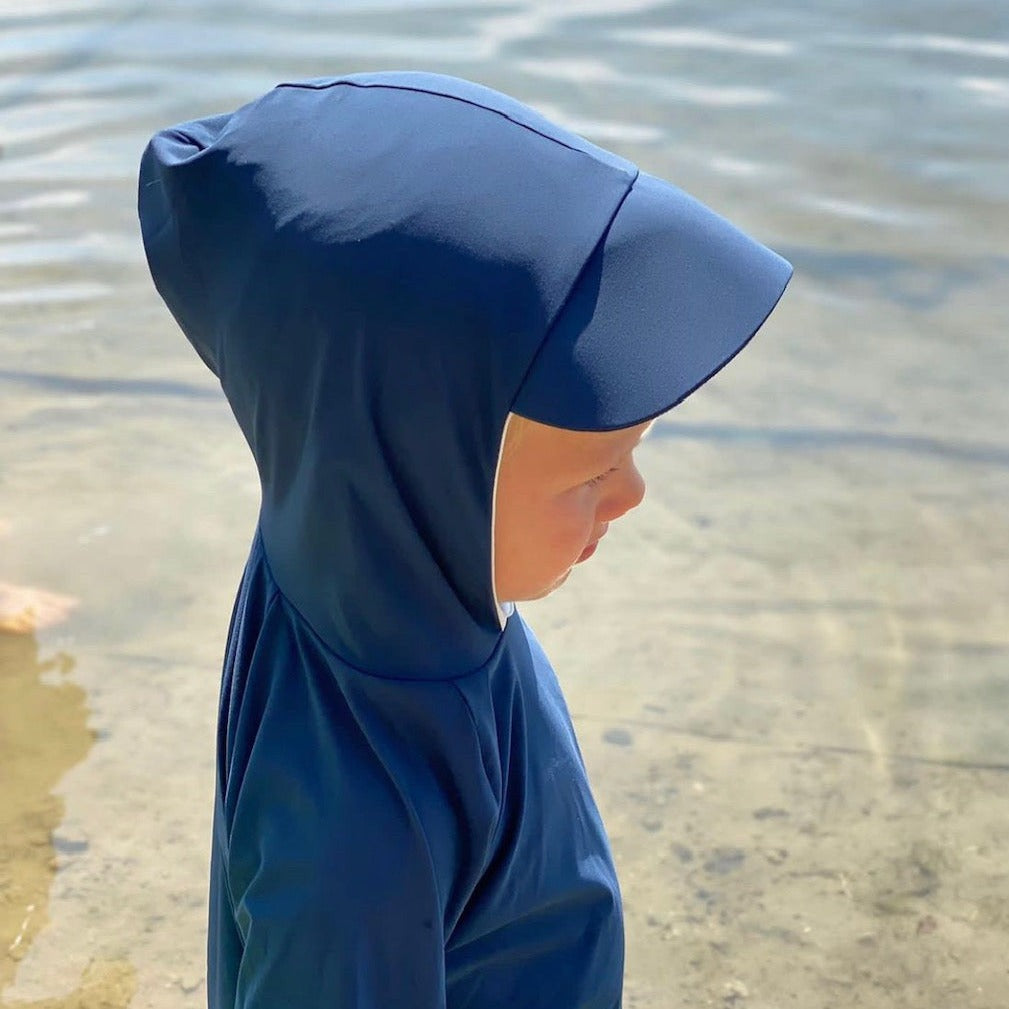 Stylish UV top with UPF50 , produced in collaboration with dermatologists. The top has long sleeves and a built in visor cap in one! . It is made with an Italian coordinated fabric system based on innovative and patented technology. Kalani only utilizes fabrics complying with Oeko-Tex Standard 100, guaranteeing safety from harmful substances.