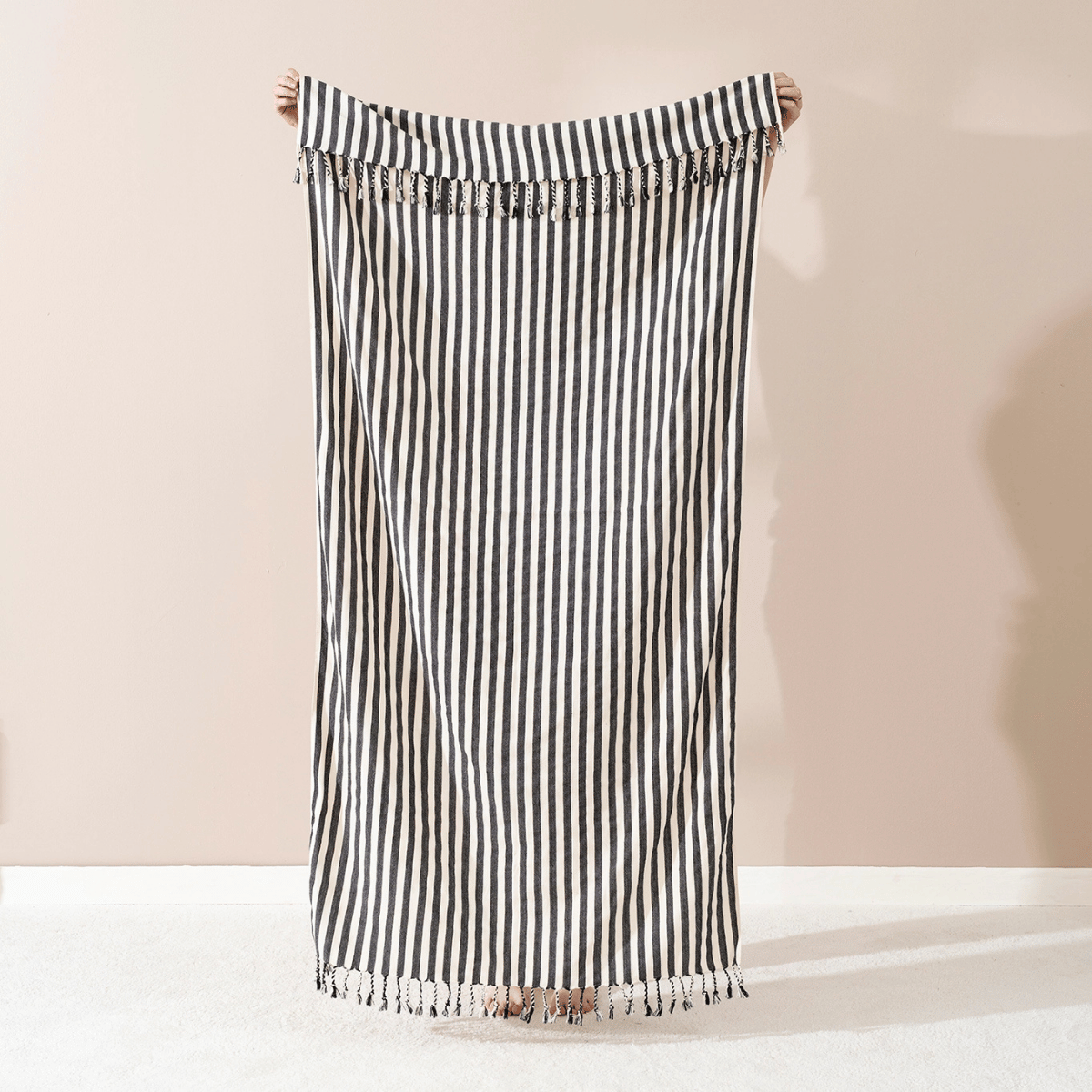 Ge din strandlook ett stilrent lyft eller ge bort som en uppskattad present – vår svart randiga hamamhandduk är både praktisk och elegant.